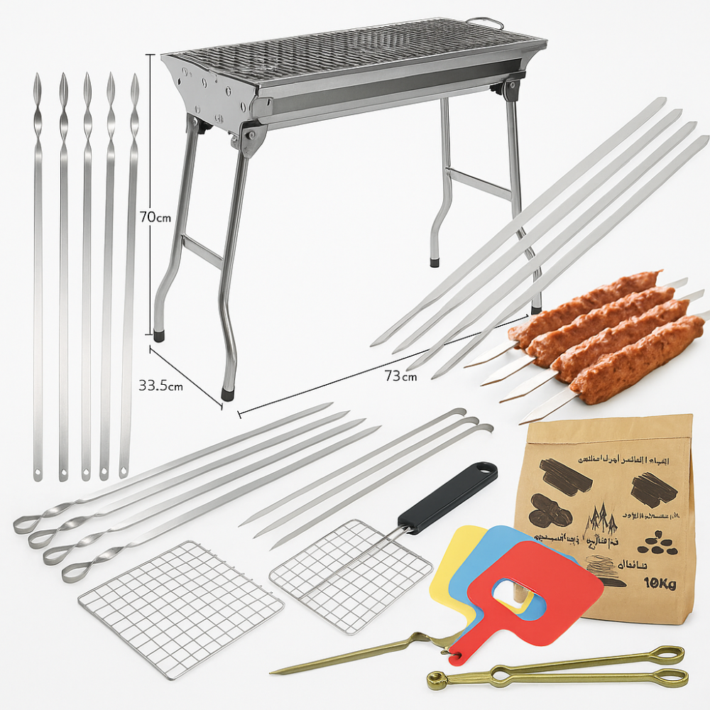 - 10 × سيخ مبسط عريض للكباب استانلس: 10 × 3 = 30ريال